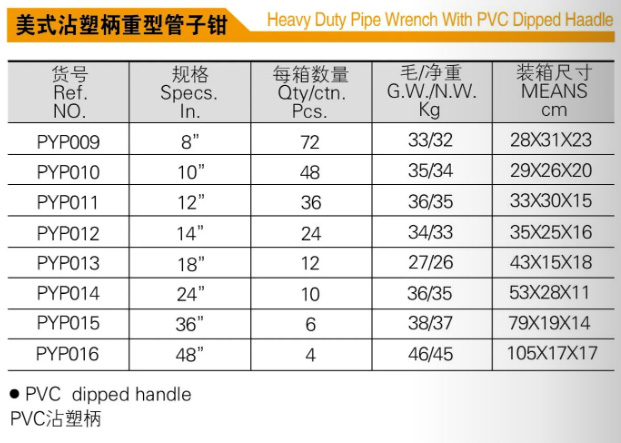 Heavy Duty Pipe Wrench With PVC Dipped Haadle